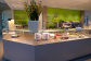 Durch die Verlegung der Kundentoiletten in den dem Cafè zugeschlagenen Teil der Halle entstand neuer Raum, der die Realisierung eine großen Gastronomieküche auf dem neuesten Stand der Technik möglich machte. Eine Lüftugsdecke sorgt für gute Luftqualität in der Küche.